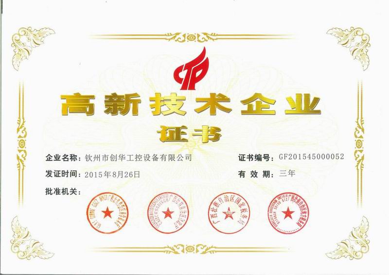 欽州市創(chuàng)華工控設備有限公司順利通過廣西壯族自治區(qū)2015年第一批高新技術企業(yè)復審。